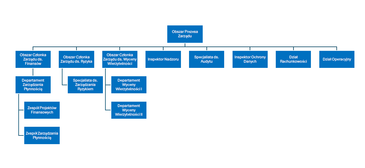 Od dnia 1 luty 2026 r., zgodnie z Załącznikiem nr 1 do uchwały nr 12/I/2026 Zarządu Spółki, struktura organizacyjna KRUK TFI S.A. prezentuje się następująco: